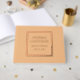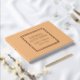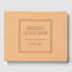 Solide Pfirsichfarbe, einfaches Hochzeitsgast-Buch mit stilisiertem Folienprint in einem quadratischen Rahmen, der den Namen der Braut und des Bräutigams sowie das Hochzeitdatum in Ihrer Wahl der Farbfolie enthält. Hier in Rose Goldfolie drucken. Wählen Sie Ihren Gastbuchstil aus.