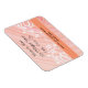 Mit diesem anpassbaren, flexiblen Magneten, der Ihre Informationen an zwei verschiedenen Orten speichert, können Sie Ihr Unternehmen fördern. Der Magnet hat eine weiße filigrane, florale und weiche pfirsichfarbene Spirale über einen computergenerierten Fraktal-Hintergrund aus rosa und pfirsichfarbenen Spiralen, die von beiden Enden kommen. Der blassfarbene Pfirsich skizzierte orangefarbene Bar Ihrer Geschäftsinformationen.
