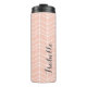 Peach und Gray Herringbone Monogramm Thermosbecher
