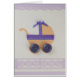 Handgeschnittene Pfirsichfarben Babywagen mit lila Bogen und lila Band und geklebten lila Tasten auf den Rädern, geklebte lila Papierverzierung, für geburtenes Mädchen. *Alle Dinge, die Sie auf den Produkten sehen, sind handgefertigt, aber Sie müssen wissen, dass Sie ein Foto bekommen!