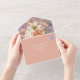 Vereinfachen Sie Ihr Hochzeitsgeschenk mit dieser pfirsichfarbenen und lila Blumen-All-in-One-Einladung. Mit eleganten Aquarellfarben, Pampas-Grasakzenten und einem weichen Lavendelhintergrund bietet dieses rustikal-boho-artige Design Platz für Ihre Einladungstexte, UAWG- und Gastinformationen sowie ein optionales Foto auf der Rückseite. Einfach zu anpassen und schön zusammengehalten! Bitte beachten Sie: Diese Einladung erfordert einen separaten Briefumschlag.