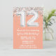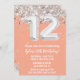Peach silber und weiß 12. Geburtstag Einladung 12 Geburtstag Party Einladung für ein weißes Silber mit modernem Drehbuch und lustige Folie Ballons.