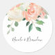 Fügen Sie Ihren Hochzeitseinladungen oder anderen Korrespondenzen mit diesen schönen Umschlag Aufklebern ein besonderes Detail hinzu. Ein Bouquet mit pfirsichfarbenen und cremefarbenen Rose, Eukalyptus und üppiger Vegetation verleiht dem Design einen stilvollen Pop sanfter Farbe. Eine Textvorlage ist für die Personalisierung mit den Namen der Braut und des Bräutigams oder anderen gewünschten Text in einem modischen, handgeschriebenen Schriftbild enthalten.