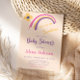 Genießen Sie Ihren kleinen Sonnenschein mit dieser zauberhaften, pfirsichfarbenen Babydusche. Mit einem handgezeichnet pastellfarbenen Regenbogen, einem Akzent auf süße Blume und spielerischer Typografie in Gelb, Rosa und lila Farbtönen ist dieses charmante Design perfekt geeignet, um ein kleines Mädchen zu ehren. Der weiche pfirsichfarbene Hintergrund verleiht Wärme und Eleganz und eignet sich somit ideal für eine fröhliche und herzliche Feier. Einfach mit Ihren Veranstaltungsdetails personalisieren, um es zu Ihrem einzigartigen zu machen!