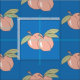 Ein wunderschöner blauer Stoff mit einem Muster aus Pfirsichfrüchten. Stellen Sie sicher, dass Sie den Stoff auswählen, der für Ihr Projekt geeignet ist. © ArianeC Illustrations-Alle Rechte vorbehalten