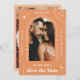 Peachy Apricot Boho Arch Retro Script 2 Foto 70er Save The Date