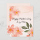 Unsere Muttertagskarte für Peachy-Blume verfügt über einen Pfirsichhintergrund mit Blume in den oberen und unteren links Ecken und in der unteren rechten Ecke. Der Text auf der Vorderseite lautet: "Glücklicher Muttertag für meine Mama." Auf der Rückseite der Karte befindet sich ein pfirsichfarbener Hintergrund und ein Set von drei Blume, die zur Vorderseite passen. Der Text lautet: "Zur besten Mama der ganzen Welt! Liebe und Umarmung, Sher." Alle Texte können individuell angepasst werden. Diese Muttertagskarte ist perfekt für alle Mütter, Stiefmütter, Großmütter und mehr!