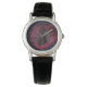 Uhr, Klassische Damenuhr mit schwarzen Lederarmband