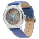 Kinderuhr aus Edelstahl mit blauem Lederarmband