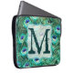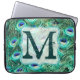 Peacock Bird Feather Aquamarin Monogram 15" Laptop Laptopschutzhülle