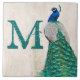 Peacock Bird Fether Aquamarine Monogram Display Ti Fliese