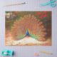 Schöne Vintage Kunstwerke eines Pfauenvögels in voller Balzfedern-Anzeige, mit einem Pfauenschmetterling, ist auf diesem Tissue Paper zu sehen. Das Bild ist aufgrund des abgelaufenen Urheberrechts öffentlich zugänglich.