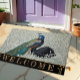 Willkommen Doormat mit Vintagen Kunstwerken aus Peacock und Black Swan, umgeben von einem wunderschönen botanischen Garten, Blume im Winter Weiß in Gold der Art Nuovo im Stil von William Morris. Herrliches Geschenk für das Mähhaus, Hochzeiten und Jubiläum. Passen Sie den Begrüßungstext einfach an. Für andere Versionen / Anpassung, sehen Sie bitte in meinem Geschäft.