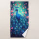 Peacock - Blaue grüne Aquafedern und rosa Blume Badhandtuch Set