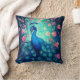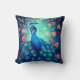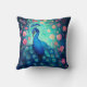 Peacock - Blaue grüne Aquafedern und rosa Blume Kissen