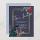 Schöner Pfau mit Aquamarinen und blauen, bordeauxfarbenen Blume, Salbei-grüne Blätter in diesem Herbst, Herbst, Winterhochzeit. Teil einer größeren Sammlung, die preiswerte Einladungen für Hochzeiten, speichern Sie die Daten, RSVPs, danke Fotokarten, Bridal und Hochzeitsfeier Geschenke, und vieles mehr. Für eine detailierte Gratis-Winter Hochzeitsplanung besuchen Sie bitte weddingdesignchic.com.