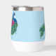 Ein Pfau mit Fuchsia lotus Blume und Henna in einem hellblauen Hintergrund