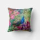 Peacock Elegant Blau Rosa Blume Grün Kissen