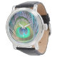 Peacock Feather auf Türkis Armbanduhr