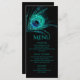 Peacock Feather Chic Glitzer Turquoise Bat Mitzvah Menükarte