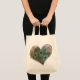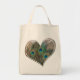 Fun Pfauenbeutel mit Doppelherz mit Pfauenfedern auf einem Felsuntergrund in herzförmiger Form. Große Einkaufstüte oder legen Sie es auf eine andere Tasche