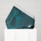 Ein Single mit lebendiger Pfauenfeder, die vor einem strukturierten, blauen Hintergrund platziert wurde und die leuchtenden Farben und Details unterstreicht.