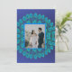 Lebhafte blaue und aquamarine Pfauenfedern, die das Motiv des gemusterten Designs wiederholen, können mit dem eigenen Foto auf der Vorderseite und mit der persönlichen Botschaft auf der Rückseite individuell gestaltet werden.