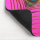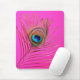 Schönes rosa Mousepad mit farbenfroher Pfauenfeder nah-up.