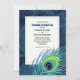 Peacock Feather Navy Blue Gold Wedding Einladung
