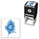 Briefmarke mit einem Vektor, der eine Pfauenfeder zeichne, verbessert und in einem Soft-Conte-Effekt gerendert