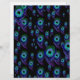 Tiefes schwarzes Papier mit schwebenden Pfauenfedern in unterschiedlichen Größen. Die coole Blues und Purples Pop gegen das Schwarze in diesem Scrapbook Papier. Vergnügungspapier für Scrapbooking oder andere Papierhandwerke, oder auch als Packpapier für eine kleine, wertvolle Verpackung.