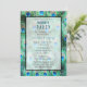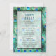 Eine Einladung zum Junggeselinnen-Abschied mit einem farbenprächtigen Muster exotischer und wilder Pfauenfedern in hübschen aquamarinen, Juwelgrün, Aqua und Kobaltblau. Künstlerisch und extravagant, mit Aquarellen geschaffen. Ein elegantes und stilvolles Design.