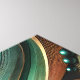 Intricate peacock feathers swirl gracefully in a mesmerizing pattern. The design features vibrant teal, gold, and blue hues that catch the eye.