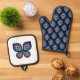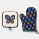 Cook in style with this Peacock Flame kitchen set, featuring a radiant butterfly on the potholder and a repeating flame pattern on the mitt for coordinated flair.