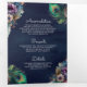 Peacock Floral Feather QR Code Navy Blue Wedding Dreifach Gefaltete Einladung