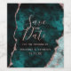Peacock Green Rose Gold Agate Marble Save the Date Weinetikett