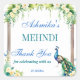 Pfau- und Jasminblüten arch indische Hochzeitsmaschine Geschenk Geschenk Dankeschön Sticker, Pfau im Jasmingarten, Jasmine gajra blüht auf Vintagen arch mehndi henna Gastgeschenk Aufkleber.