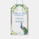 Pfau und Jasminblüten arch indische Hochzeitstechnik Gunsten Geschenk-Tags, Pfau im Jasmingarten, Jasmine gajra blüht auf Vintagen arch mehndi henna Gastgeschenk Tags.