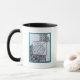 Peacock & Leaf Blk & Whit Ink Turquoise Border Mug Tasse
