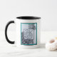 Peacock & Leaf Blk & Whit Ink Turquoise Border. Tasse
