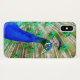 Dieses Design zeigt ein Bild eines wunderschönen Pfaues mit einem hellblauen Körper und farbenfrohen Absturz. Die Vögel sind auf dem indischen Subkontinent und Südostasien beheimatet; es gibt auch eine afrikanische Spezies, den Kongo-Pfau. Sie sind bekannt für ihre lauten Rufe und ihren extravaganten Absturz.