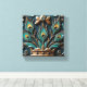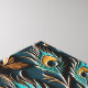 A crown with peacock feathers, gold and turquoise colors, intricate details, ornate design, symmetrical composition, royal emblem, dark teal background, vintage style, decorative art.