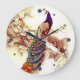 Die wunderschöne Wildtierszene bietet einen majestätischen Pfau in aquamarinen, blauen, lila und orangefarbenen Farbtönen auf einem mit Blume beladenen Baumzweig. Soft Creme Hintergrund Diese schöne Vintage Vogelkunst wird auf vielen Gegenständen in meinem Geschäft angeboten.
