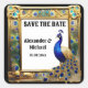 Peacock Save the Date art nouveau feathers Quadratischer Aufkleber