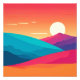 Dieses skurrile Kunstwerk zeigt die Schönheit eines lebhaften Sonnenuntergangs über schneebedeckte Berge. Die Farbenpracht und der spielerische Stil verleihen jedem Zimmer eine magische Touch.