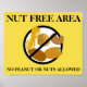 Customizable Tree Nut and Peanut Free Area for School, Bus or Office. Black and white sign with large yellow no peanuts or tree nuts symbol. Multiple sizes available, may customize text to change wording. Food allergy friendly, peanut allergy friendly sign to hang at daycare, child care center, school or classroom, doctors office or businesses. Designs by Lil Allergy Advocates www.lilallergyadvocates.com
