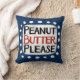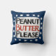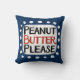"Peanut Butter, Bitte" ist ein niedliches Textdesign in blau mit schwarzem und rotem Text, zusammen mit einer weißen Akzent-Form und weißen texturierten weißen, weißgetönten weißen Punkten, die ihn umgeben.