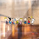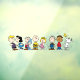 Karo gemeinsam aus dieser Reihe der Peanuts-Bande, mit Schröder und Lucy, Linus mit seiner Decke, Charlie Brown und seiner Schwester Sally, Pigpen, Franklin beim Snoopy-Tanz, und Woodstock, der über Kopf fliegt.
