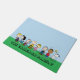 Karo gemeinsam aus dieser Reihe der Peanuts-Bande, mit Schröder und Lucy, Linus mit seiner Decke, Charlie Brown und seiner Schwester Sally, Pigpen, Franklin beim Snoopy-Tanz, und Woodstock, der über Kopf fliegt.