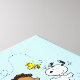 Karo gemeinsam aus dieser Reihe der Peanuts-Bande, mit Schröder und Lucy, Linus mit seiner Decke, Charlie Brown und seiner Schwester Sally, Pigpen, Franklin beim Snoopy-Tanz, und Woodstock, der über Kopf fliegt.